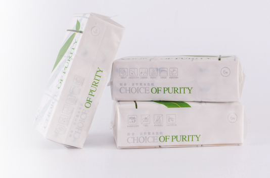 采用精选100%天然原生竹浆,并经过超高温处理。洁净卫生,无添加,无漂白,手感细滑,吸水性强,无粉尘卫生卷纸